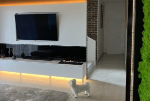 Установка биокамина под телевизором