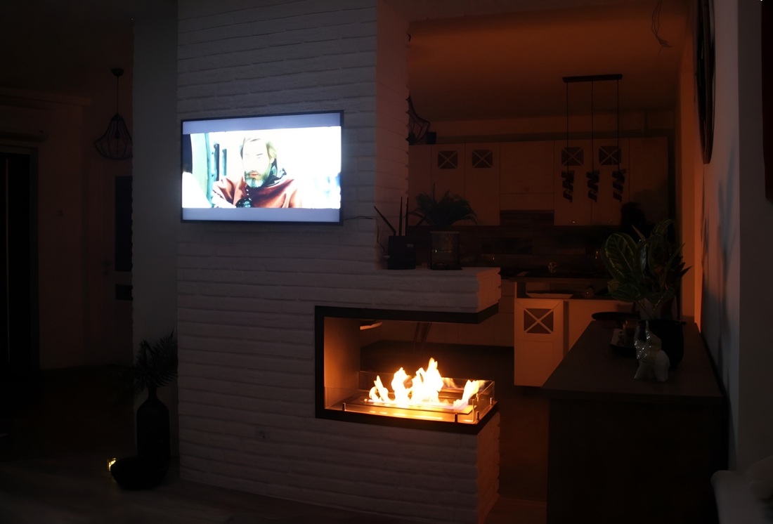 Установка биокамина под телевизором
